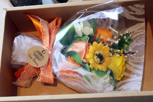 Originell tvål-blombukett i låda