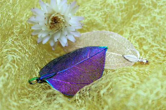 Lövhängsmycke Multicolor + Läderhalsband på köpet!