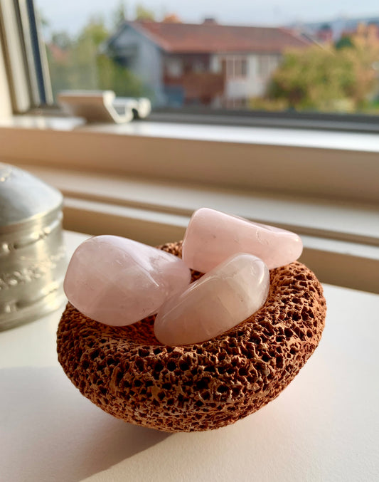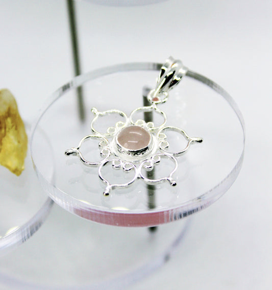 Lotushänge i silver 925 med rosekvarts + Läderhalsband på köpet!