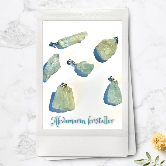 Sista Rå akvamarin kristall hängsmycke + Läderhalsband på köpet!