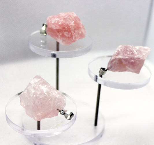 Stor rå rosékvarts silverhänge + Läderhalsband på köpet!